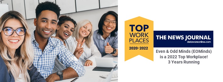 For the 3rd consecutive year, Even & Odd Minds, LLC has been named as one of the 2022 Top Workplace! in Delaware by The News Journal’s - Delaware Online.com.